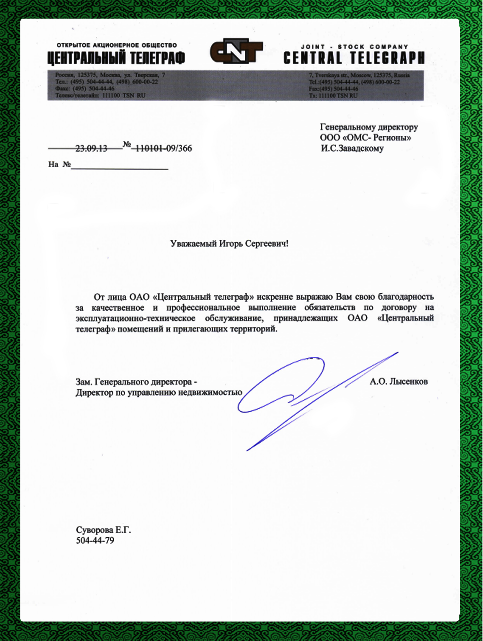 | Глотов Игорь Директор филиала Москва |