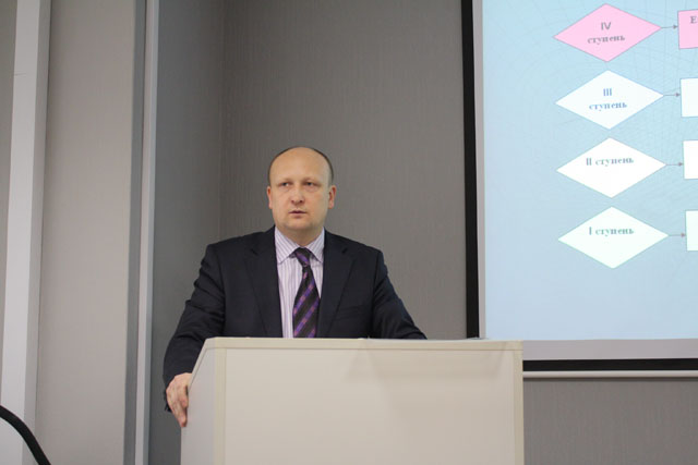 С докладом о порядке оказания сервисных услуг Заказчикам в рамках действующих договоров, оформлении текущей отчетности и актов выполненных работ выступил заместитель директора департамента управления недвижимостью Касторнов С.В.