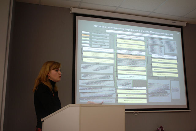 С докладом о ходе подготовки отделов и служб департамента управления недвижимостью к повторному аудиту на соответствие требованиям Международного стандарта ISO 9001:2008. выступила руководитель отдела управления качеством Фокина Н.В.